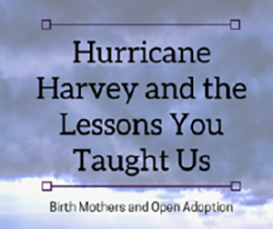 A few weeks ago, I was with my family in Frisco, TX escaping Hurricane Harvey. That week was a whirlwind of emotions. Every day we were bombarded with images that reminded us of how very uncertain our future so often is. That deep and ongoing uncertainty is an emotion I am all too familiar with; as a birthmother blessed with an open adoption, the feelings were very similar.